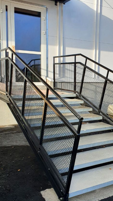 Mittatilaustyönä valmistetut teräsportaat ja -kaiteet soveltuvat sekä sisä- että ulkokäyttöön. Tarjoamme erilaisia materiaalivaihtoehtoja ja kaidetäytteitä, kuten metalliverkkoa.